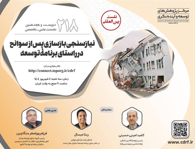 نشست علمی نیاز سنجی بازسازی سوانح در راستای برنامه توسعه ۰۳ شهریور ۱۴۰۴ | ۱۲:۳۷ کد : ۵۴۰۰۰ اطلاعیه ارسال به دیگران نام شما ایمیل شما ایمیل دریافتکننده ارسال انصراف تعداد بازدید:۲۰۴۰ نشست علمی نیاز سنجی بازسازی سوانح در راستای برنامه توسعه، توسط مرکز پژوهش های توسعه و آینده نگری برگزار می گردد.
