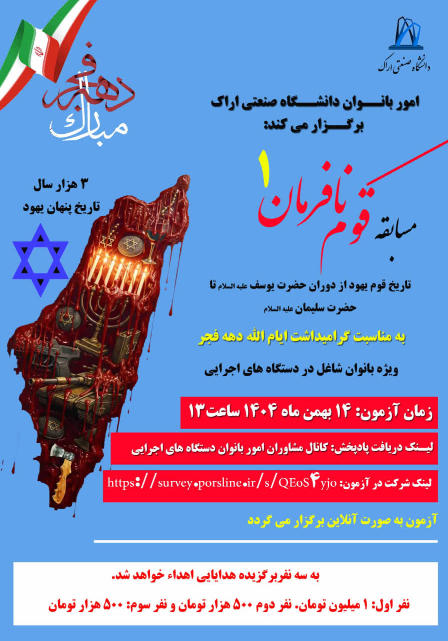 مسابقه قوم نافرمان ۰۸ بهمن ۱۴۰۴ | ۱۰:۳۹ کد : ۵۷۷۴۳ اطلاعیه ارسال به دیگران نام شما ایمیل شما ایمیل دریافتکننده ارسال انصراف تعداد بازدید:۸۸ برگزاری مسابقه قوم نافرمان، در ایام الله دهه فجر